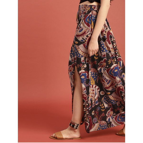 Navy Blue Denim Side Slit Pencil Midi Skirt