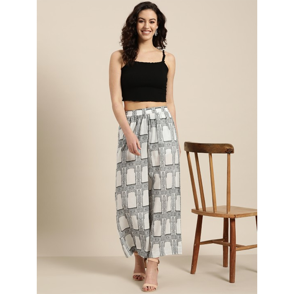 Women White Cotton Ethnic Motifs Printed Flared Palazzos