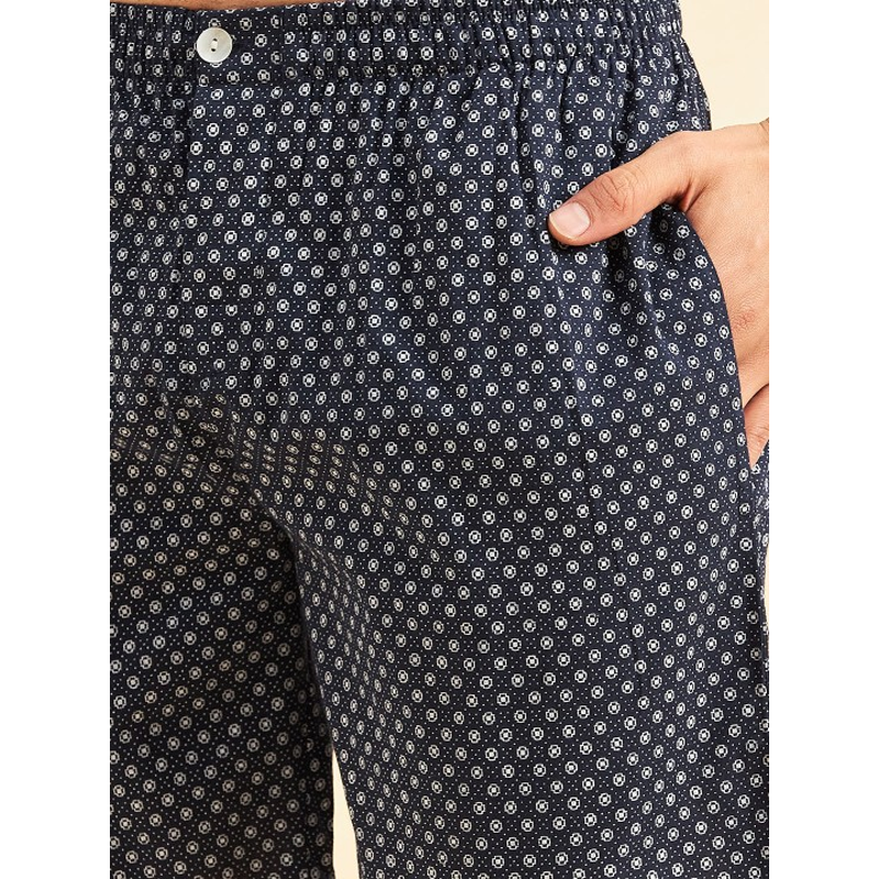 Navy Blue & White Conversational Printed Pure Cotton Night suit