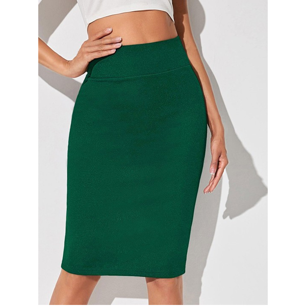Navy Blue Denim Side Slit Pencil Midi Skirt