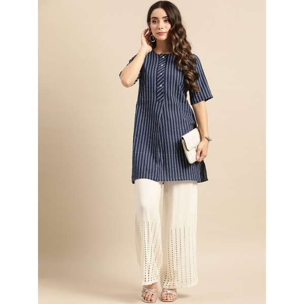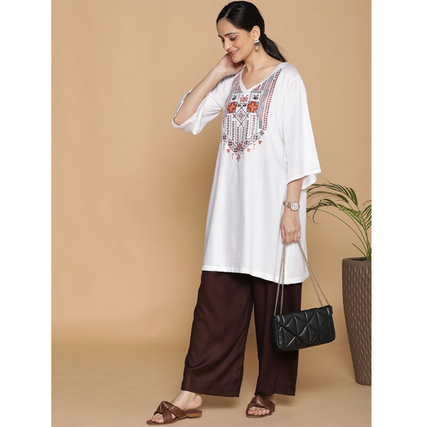 Women White Cotton Ethnic Motifs Printed Flared Palazzos