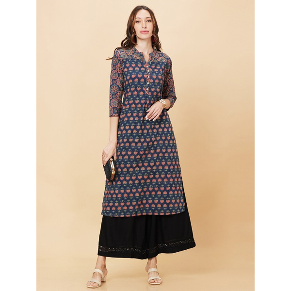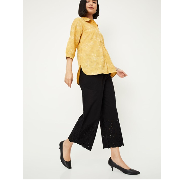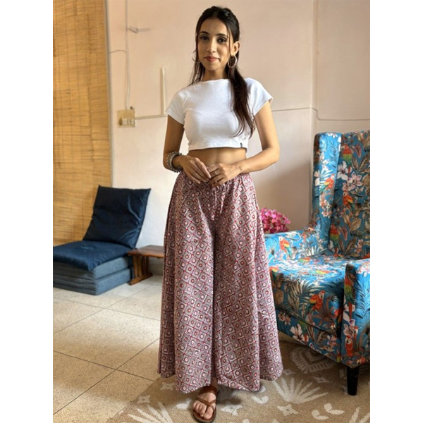Floral Lace Hem Design Wide Leg Ethnic Palazzos
