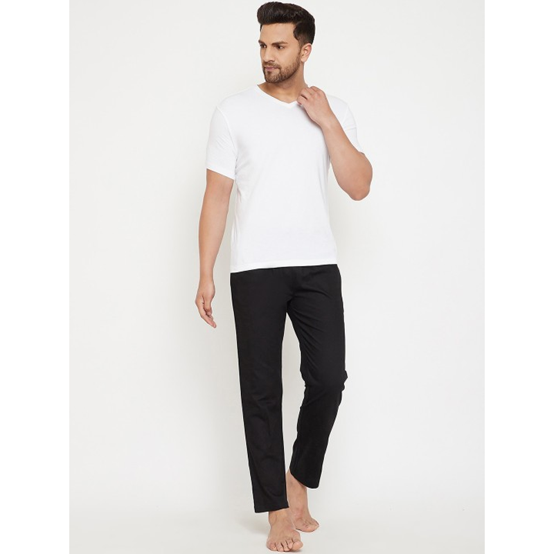 Men Black Solid Cotton Lounge Pants